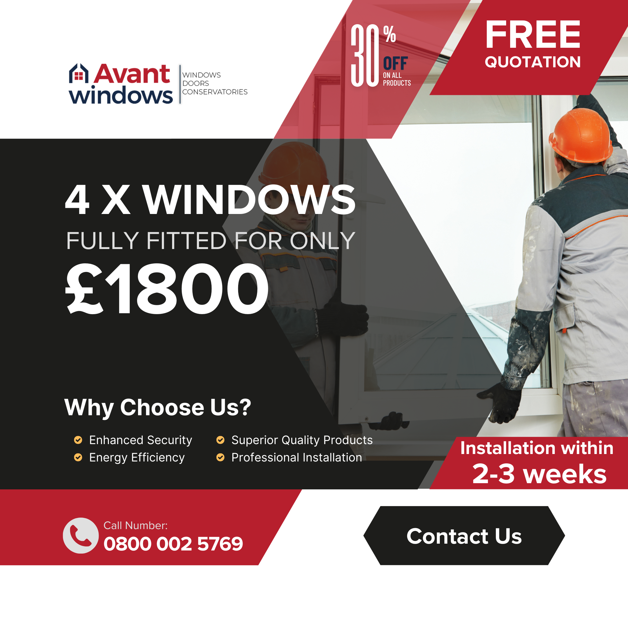 Avant Windows and Doors have been manufacturing and installing high-quality, energy-efficient, and highly secure windows and doors for homeowners across England for over 25 years. Our team has experience of 30 years in this industry.
